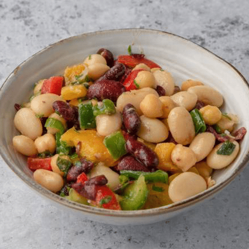 Salade de pois chiche aux poivron, haricots rouges et persil.